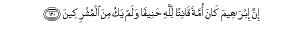 120. Hakika Ibrahim alikuwa mfano mwema, mnyenyekevu kwa MwenyeziMungu, mwongofu, wala hakuwa miongoni mwa washirikina.