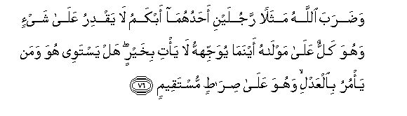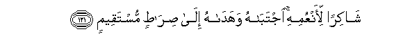 121. Mwenye kuzishukuru neema zake, Mwenyezi Mungu. Yeye kamteuwa,na akamwongoa kwenye Njia Iliyo Nyooka.