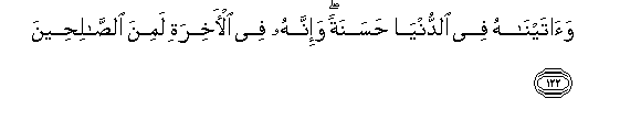 122. Na tukampa wema duniani, na hakika Akhera atakuwa miongoni mwa watu wema.