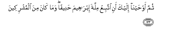 123. Kisha tukakufunulia ya kwamba ufuate mila ya Ibrahim, mwongofu,wala hakuwa miongoni mwa washirikina.
