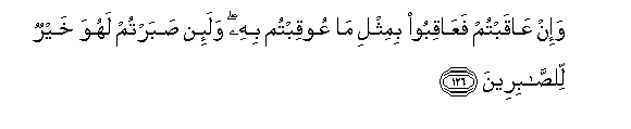 126. Na mkilipiza basi lipizeni sawa na vile mlivyo adhibiwa. Na ikiwa mtasubiri, basi hakika hivyo ni bora zaidi kwa wanao subiri.