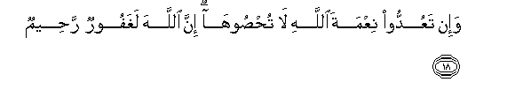 18. Na mkizihisabu neema za Mwenyezi Mungu, hamwezi kuzidhibiti.Hakika Mwenyezi Mungu ni Mwenye maghfira, Mwenye kurehemu.