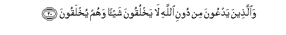 20. Na wale wanao waomba wasio kuwa Mwenyezi Mungu hawaumbi kitu,bali wao wameumbwa.