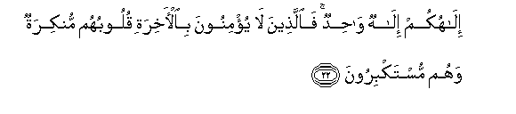 22. Mungu wenu ni Mungu Mmoja. Lakini wasio iamini Akhera nyoyo zao zinakataa, nao wanajivuna.