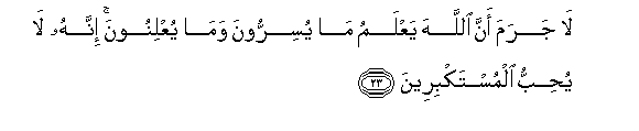 23. Hapana shaka kuwa hakika Mwenyezi Mungu anayajua wanayo yaficha na wanayo yatangaza. Kwa hakika Yeye hawapendi wanao jivuna.