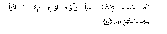 34. Basi ukawafikia uovu wa waliyo yatenda, na waliyo kuwa wakiyakejeli yakawazunguka.
