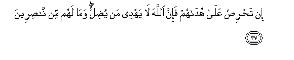 37. Hata ukiwa na pupa ya kutaka kuwaongoa, lakini Mwenyezi Mungu hamwongoi yule anaye shikilia kupotea. Wala hawatapata wa kuwanusuru.