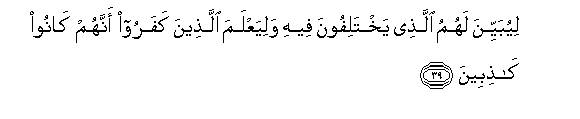 39. Ili kuwabainishia yale waliyo khitalifiana, na ili wajue waliokufuru kwamba wao walikuwa ni waongo.