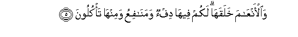 5. Na nyama hoa amekuumbieni. Katika hao mna vifaa vya kutia joto,na manufaa mengineyo, na baadhi yao mnawala.