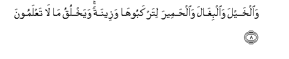 8. Na farasi, na nyumbu, na punda ili muwapande, na kuwa ni pambo.Na ataumba msivyo vijua.