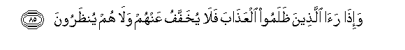 85. Na walio dhulumu watakapo iona adhabu hawatapunguziwa hiyo adhabu,wala hawatapewa muhula.