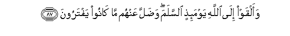 87. Na siku hiyo watasalimu amri mbele ya Mwenyezi Mungu, na yatapotea waliyo kuwa wakiyazua.