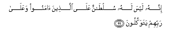 99. Hakika yeye hana madaraka juu ya walio amini na wakamtegemea Mola wao Mlezi.