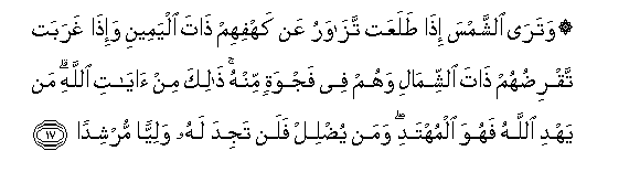 17. Na unaliona jua linapo chomoza linainamia kuliani mwao kutoka