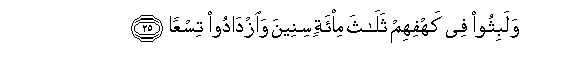 25. Na walikaa katika pango lao miaka mia tatu, na wakazidisha tisa.
