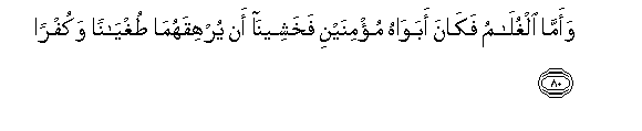80. Na ama yule kijana, wazazi wake walikuwa ni Waumini. Tukakhofu