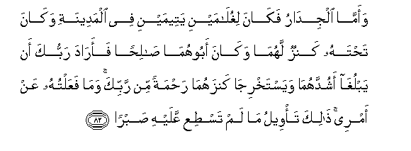 Na chini yake ilikuwako khazina yao; na baba yao alikuwa ni mtu mwema.