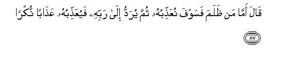 87. Akasema: Ama aliye dhulumu basi tutamuadhibu, na kisha atarudishwa