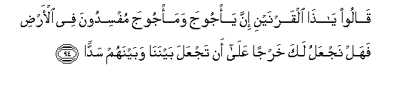 94. Wakasema: Ewe Dhul-Qarnaini! Hakika Juju-wa-maajuju wanafanya