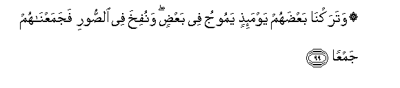 99. Na siku hiyo tutawaacha wakisongana wao kwa wao. Na baragumu