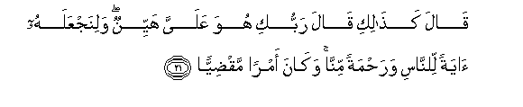 21. (Malaika) akasema: Ndio hivyo hivyo! Mola wako Mlezi amesema: