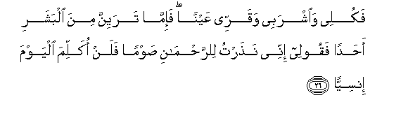 mtu yeyote basi sema: Hakika mimi nimeweka nadhiri kwa Mwenyezi Mungu ya