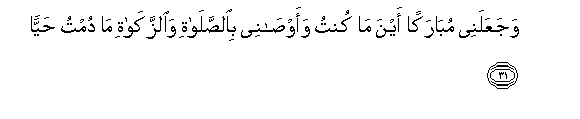31. Na amenijaalia ni mwenye kubarikiwa popote pale niwapo. Na ameniusia