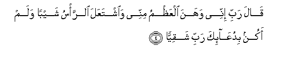 4. Akasema: Mola wangu Mlezi! Mafupa yangu yamedhoofika, na kichwa