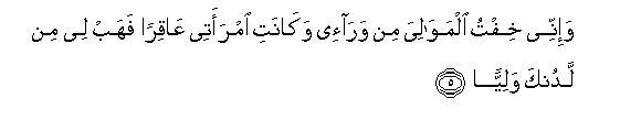 5. Na hakika mimi nawakhofia jamaa zangu baada yangu. Na mke wangu