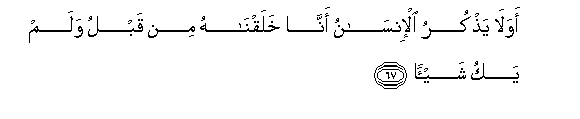 67. Je! Hakumbuki mwanaadamu ya kwamba tulimuumba kabla, na hali