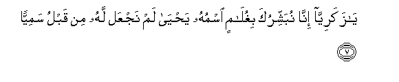 7. (Akaambiwa): Ewe Zakariya! Hakika Sisi tunakubashiria mwana; jina