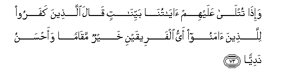73. Na wanapo somewa Aya zetu zilizo wazi, walio kufuru huwaambia