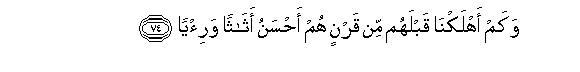 74. Na kaumu ngapi tuliziangamiza zilizo kuwa na mapambo mazuri zaidi