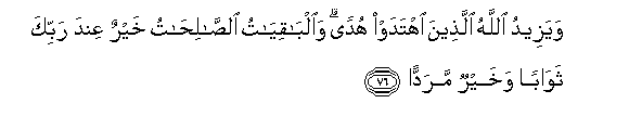 76. Na Mwenyezi Mungu huwazidishia uwongofu wenye kushika uwongofu.
