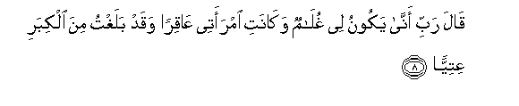 8. Akasema: Ewe Mola wangu Mlezi! Vipi nitakuwa na mwana na hali