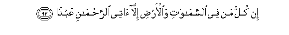 19. Hapana yeyote aliomo mbinguni na ardhini ila atafika kwa Arrahmani