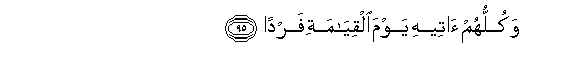 19. Na kila mmoja katika wao atamfikia Siku ya Kiyama peke yake.