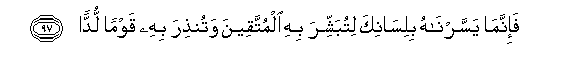 19. Na hakika tumeifanya nyepesi (Qur'ani) kwa ulimi wako, ili uwabashirie