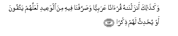 113. Na namna hivi tumeiteremsha Qur'ani kwa