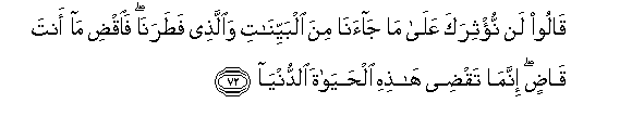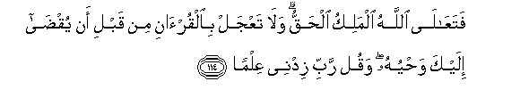 Wala usiifanyie haraka hii Qur'ani, kabla haujamalizika ufunuo wake. Na