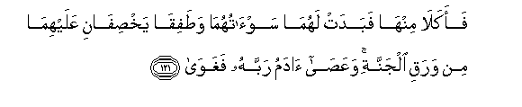 na wakaanza kujibandika majani ya Bustani. Na Adam akamuasi Mola wake Mlezi,