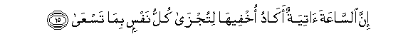 15. Hakika Saa itakuja bila ya shaka. Nimekaribia