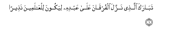 1. Ametukuka aliye teremsha Furqani kwa mja wake, ili awe mwonyaji kwa walimwengu wote.