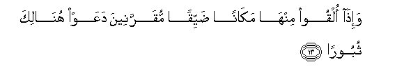 13. Na watakapo tupwa humo mahali dhiki, hali wamefungwa, wataombawafe.