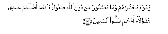 17. Na siku atakapo wakusanya wao na hao wanao waabudu, na akasema: