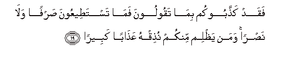 wala kujisaidia. Na atakaye dhulumu miongoni mwenu tutamwonjesha adhabu