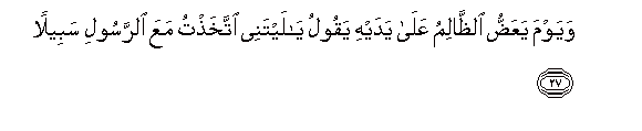 27. Na siku ambayo mwenye kudhulumu atajiuma mikono yake, na huku
