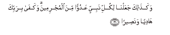 31. Na vivi hivi tumemfanyia kila Nabii adui miongoni mwa wakosefu,