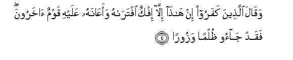 4. Na wamesema walio kufuru: Haya si chochote ila ni uzushi alio