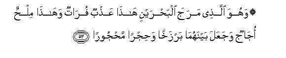 ya chumvi chungu. Na akaweka baina yao kinga na kizuizi kizuiacho.